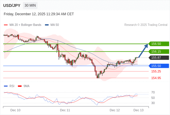 在 155.50 之上,看涨,目标价位为 156.15 ,然后为 156.50 。