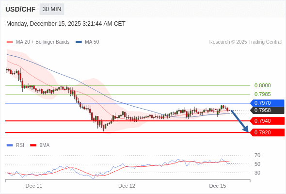 在 0.7970 之下,看跌,目标价位为 0.7940 ,然后为 0.7920 。