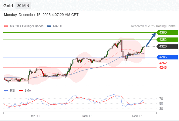 在 4285 之上,看涨,目标价位为 4352 ,然后为 4380 。