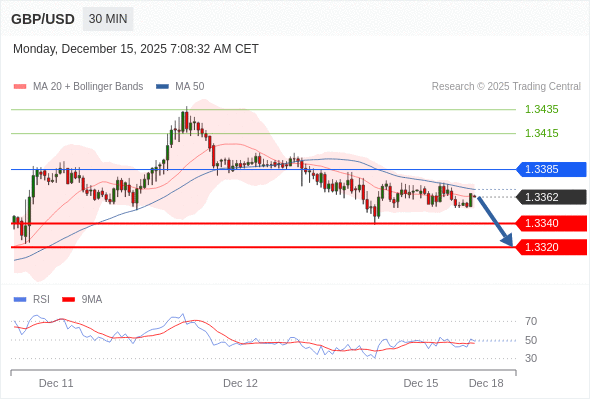在 1.3385 之下,看跌,目标价位为 1.3340 ,然后为 1.3320 。
