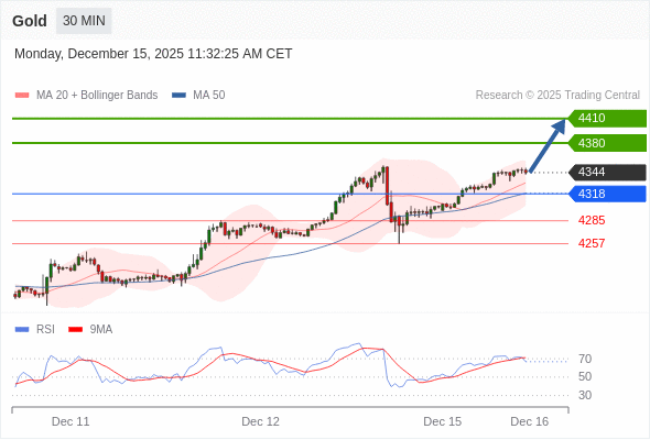 在 4318 之上,看涨,目标价位为 4380 ,然后为 4410 。