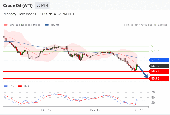 交易策略: 在 57.00 之下,看跌,目标价位为 56.23 ,然后为 55.75 。