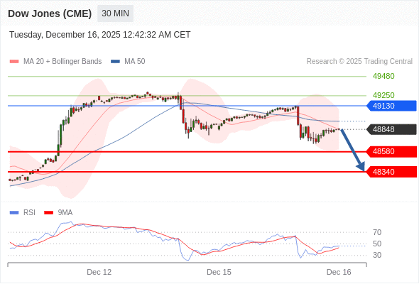 在 49130 之下,看跌,目标价位为 48580 ,然后为 48340 。