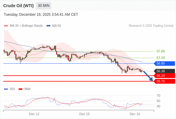 在 56.85 之下,看跌,目标价位为 56.10 ,然后为 55.75 。