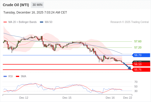 交易策略: 在 56.70 之下,看跌,目标价位为 56.10 ,然后为 55.75 。