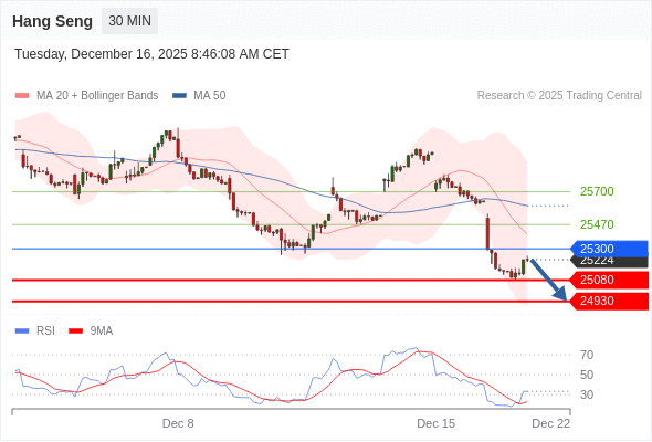 在 25300 之下,看跌,目标价位为 25080 ,然后为 24930 。