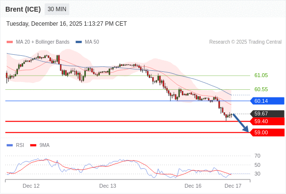 交易策略: 在 60.14 之下,看跌,目标价位为 59.40 ,然后为 59.00 。