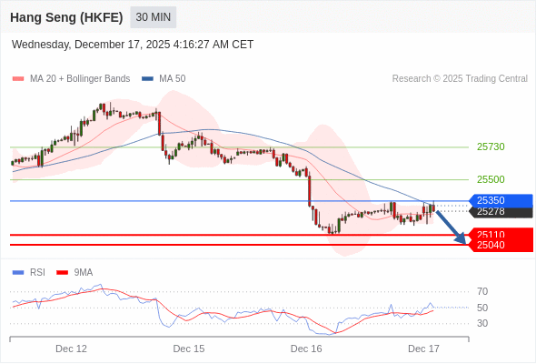 交易策略: 在 25350 之下,看跌,目标价位为 25110 ,然后为 25040 。