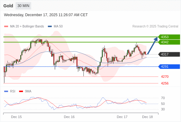 在 4291 之上,看涨,目标价位为 4342 ,然后为 4353 。