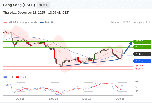 交易策略: 在 25250 之上,看涨,目标价位为 25590 ,然后为 25730 。