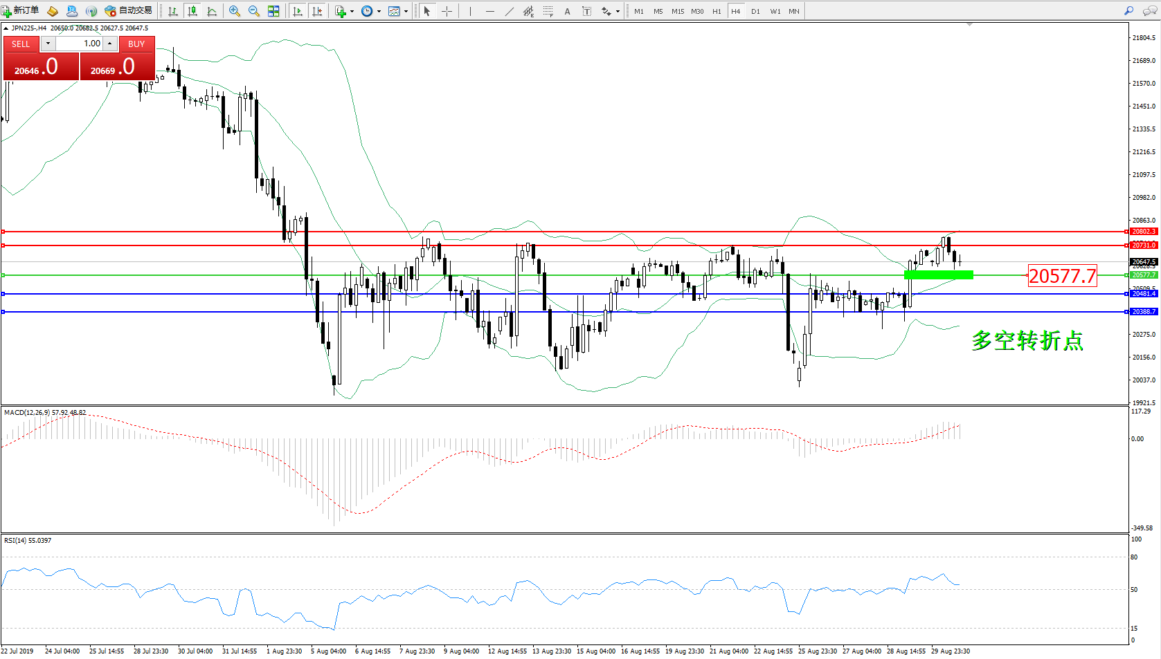 日经225指数8月30日(周五)收盘上涨259.07点,涨幅1.27%,报20720.00点。国债收益率逼近历史低点,日本央行本月再次削减购债规模;全球债市大涨导致日本国债基准收益率逼近纪录低点。日本央行周五提出购买4000亿日元(38亿美元)的5-10年期债券,低于之前例行操作时的4500亿日元。三菱日联摩根士丹利经济学家称,当收益率下跌时,日本央行表现出要干预的立场,购买量削减500亿日元,这一规模达到市场最高预期,说明日本央行没有完全置之不理任由市场推动收益率走低。