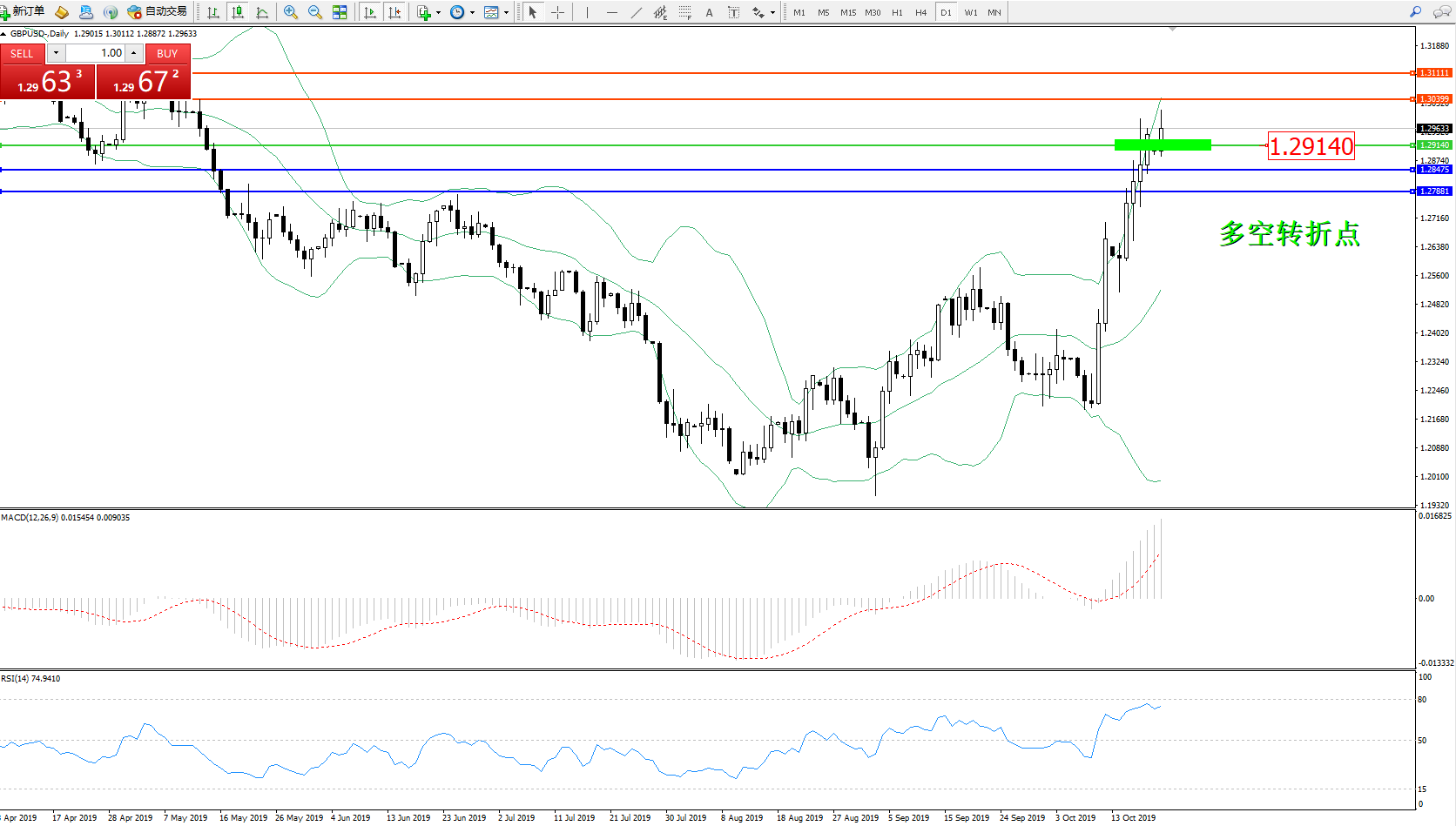 交易策略:1.29140上方看涨,目标1.30399、1.31111