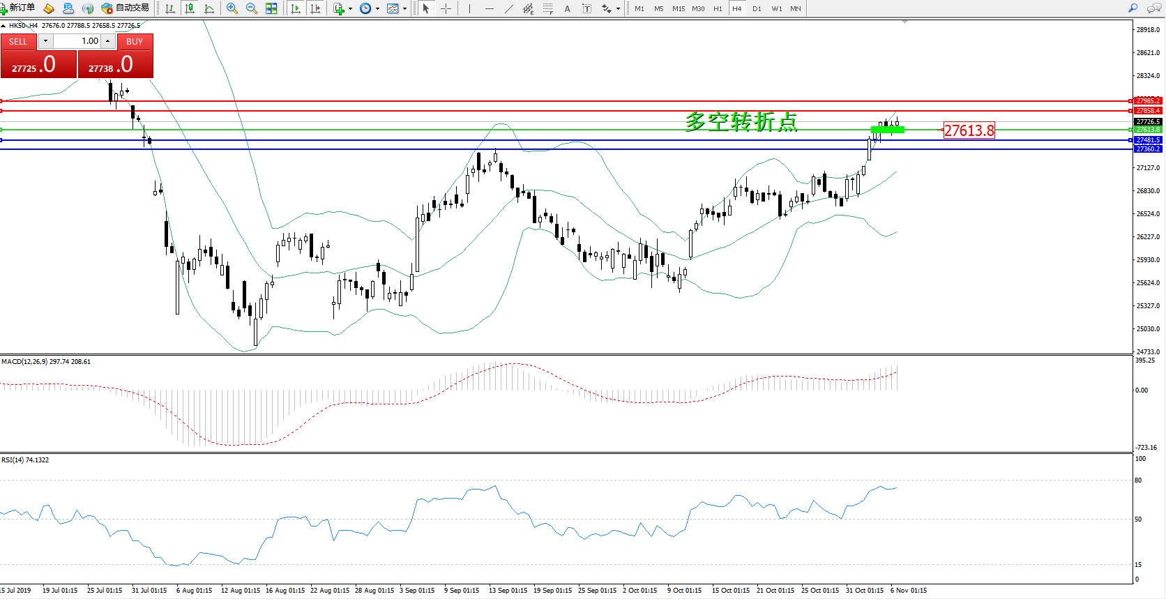 香港恒生指数11月6日(周三)收盘上涨5.24点,涨幅0.02%,报27688.64点;恒指再创近期新高,加上次新股炒作未完,盘中炒作仍有活跃,但由于部分急升股流通性有不足之处。央行昨日下调政策利率补充流动性,打消市场紧缩疑虑,而且此次为人行2016年以来首次下调MLF利率,超出市场预期,消息利好A场表现,市场氛围较之前明显改善,不过当前点位离均线较远,在无新一轮利好消息加持下,预计恒指还将震荡,有待确认下一步的方向。