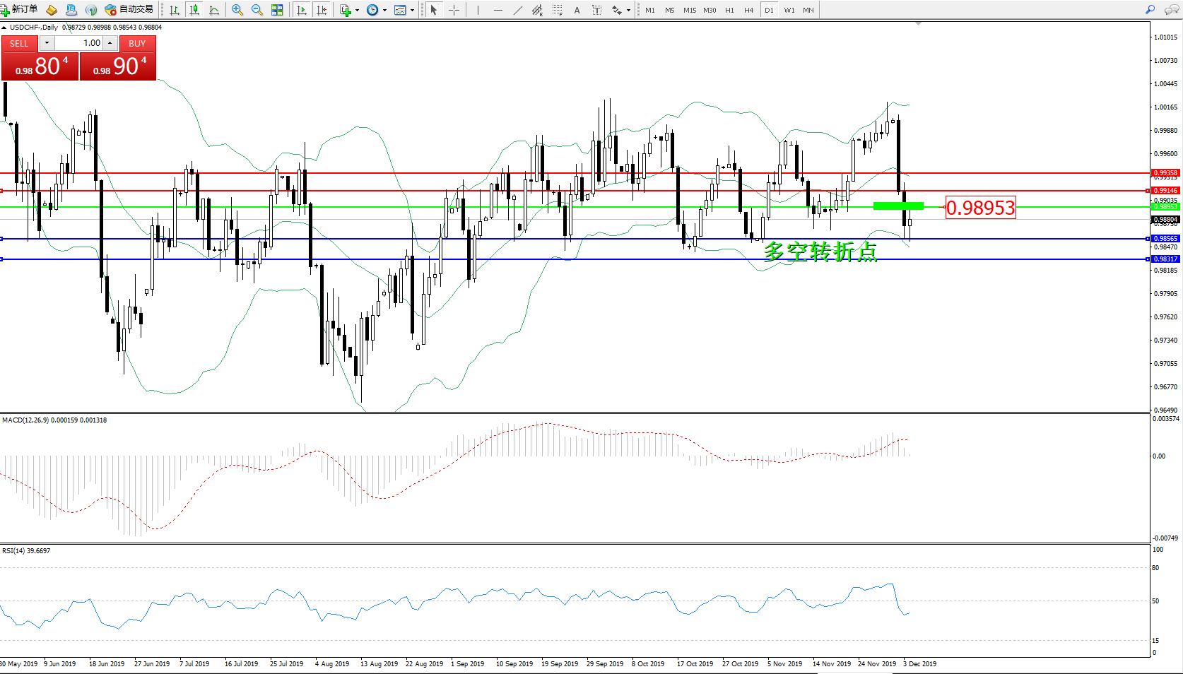 美元瑞郎USDCHF——日K线图显示: