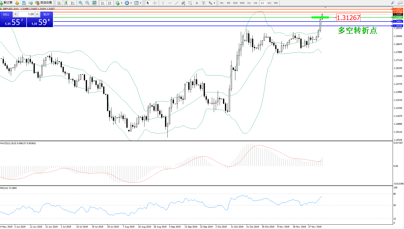 交易策略:1.31267上方看涨,目标1.31766、1.32071