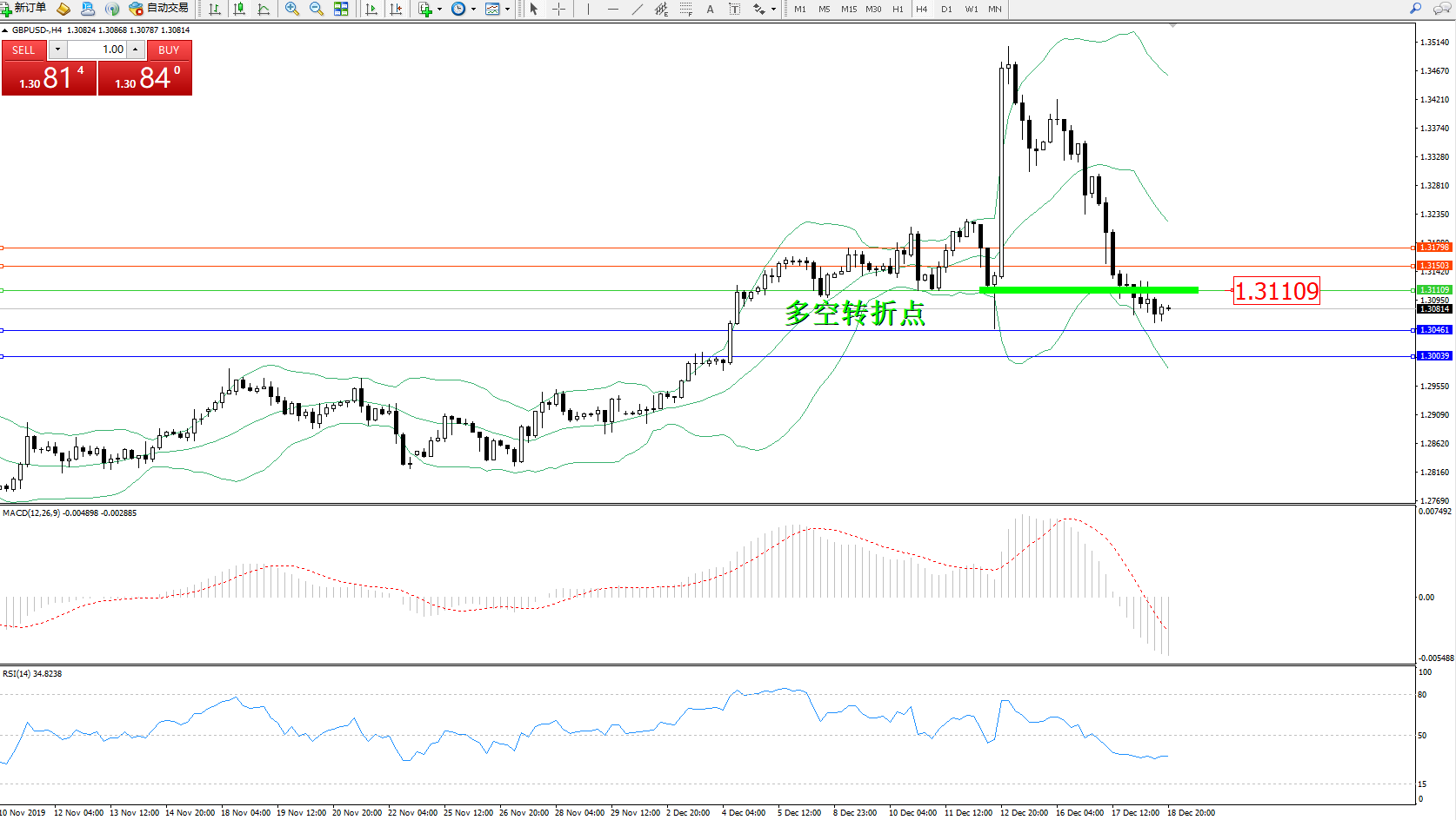 交易策略:1.31109下方看跌,目标1.30461、1.30029