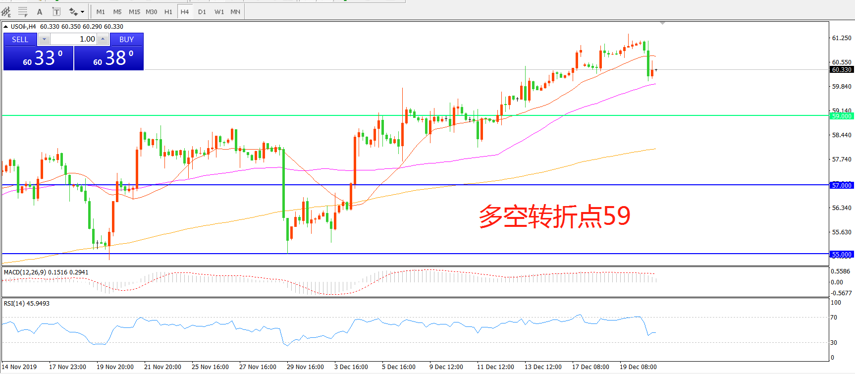 交易策略:在59.00 之上看涨,目标62.00       65.00