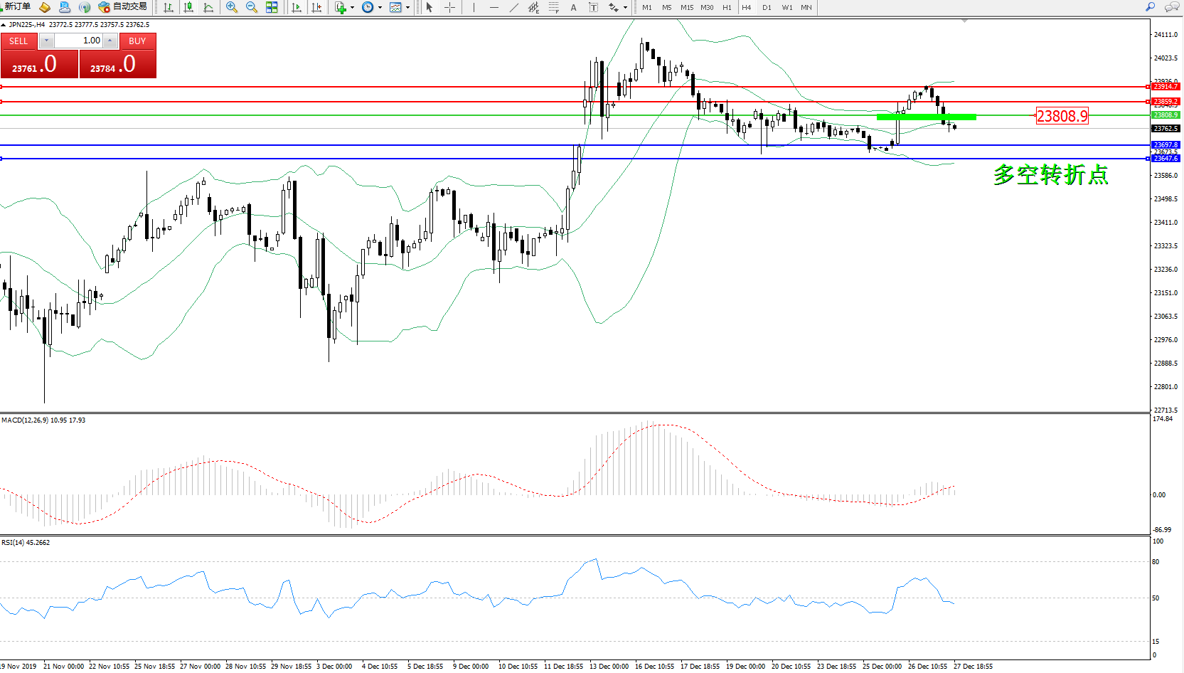 日经指数JPN225——4小时K线图: