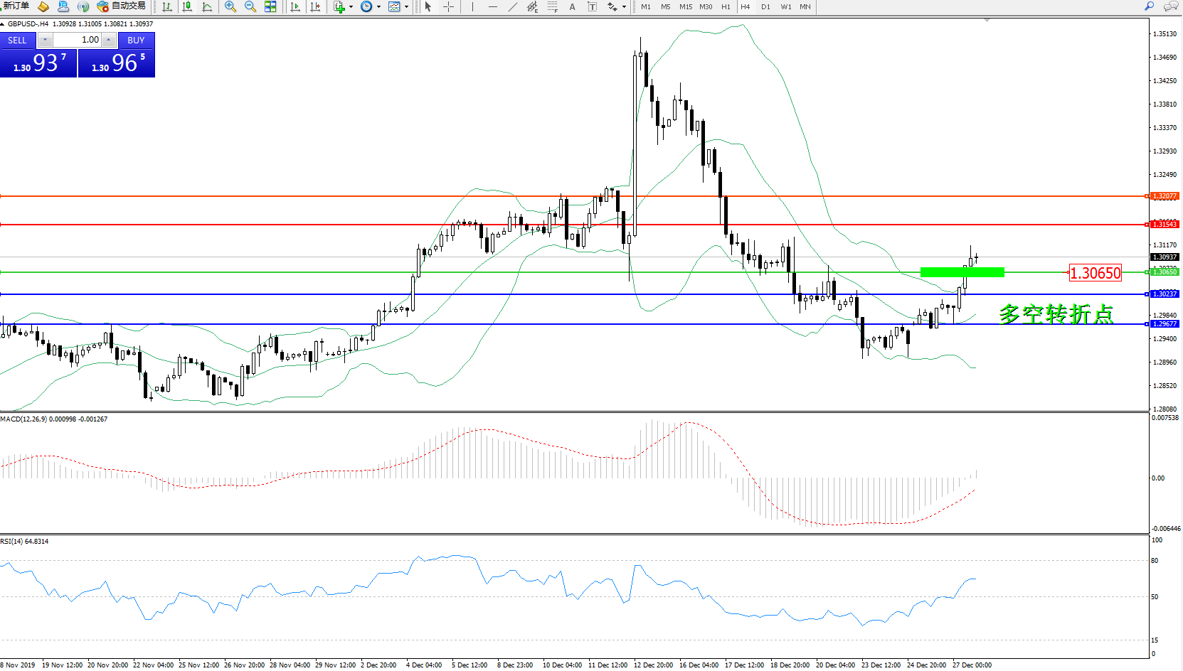 交易策略:1.30650上方看涨,目标1.315431.32077