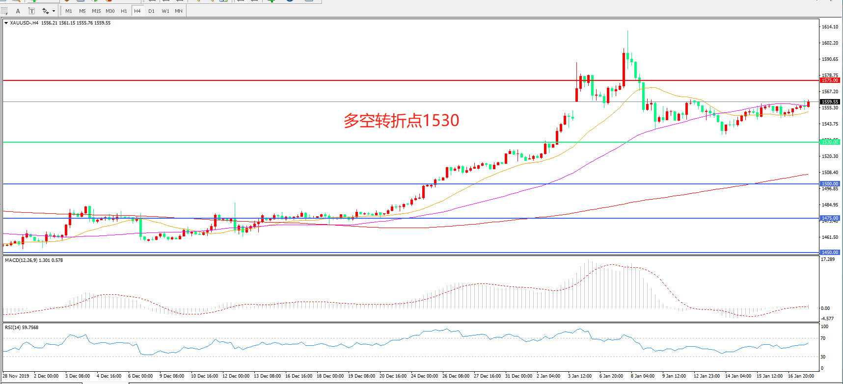多空转折点:1530.00
