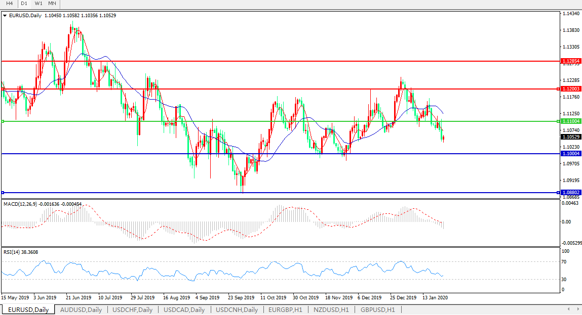 交易策略:1.1100下方看跌,目标1.1000、1.0880