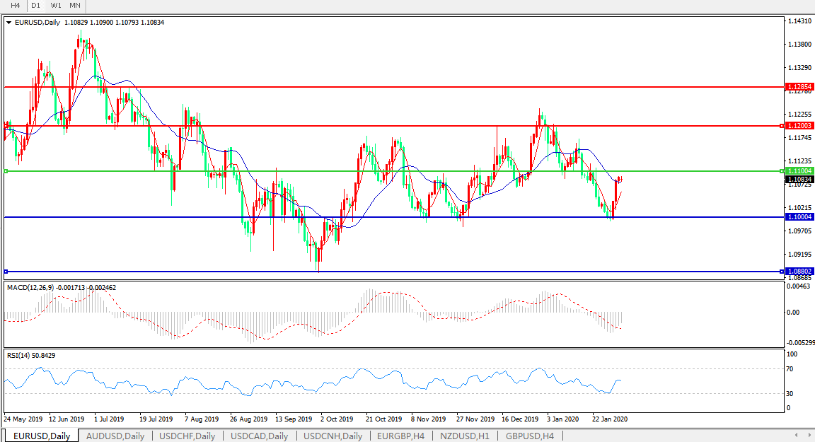 交易策略:1.1100下方看跌,目标1.1000、1.0880