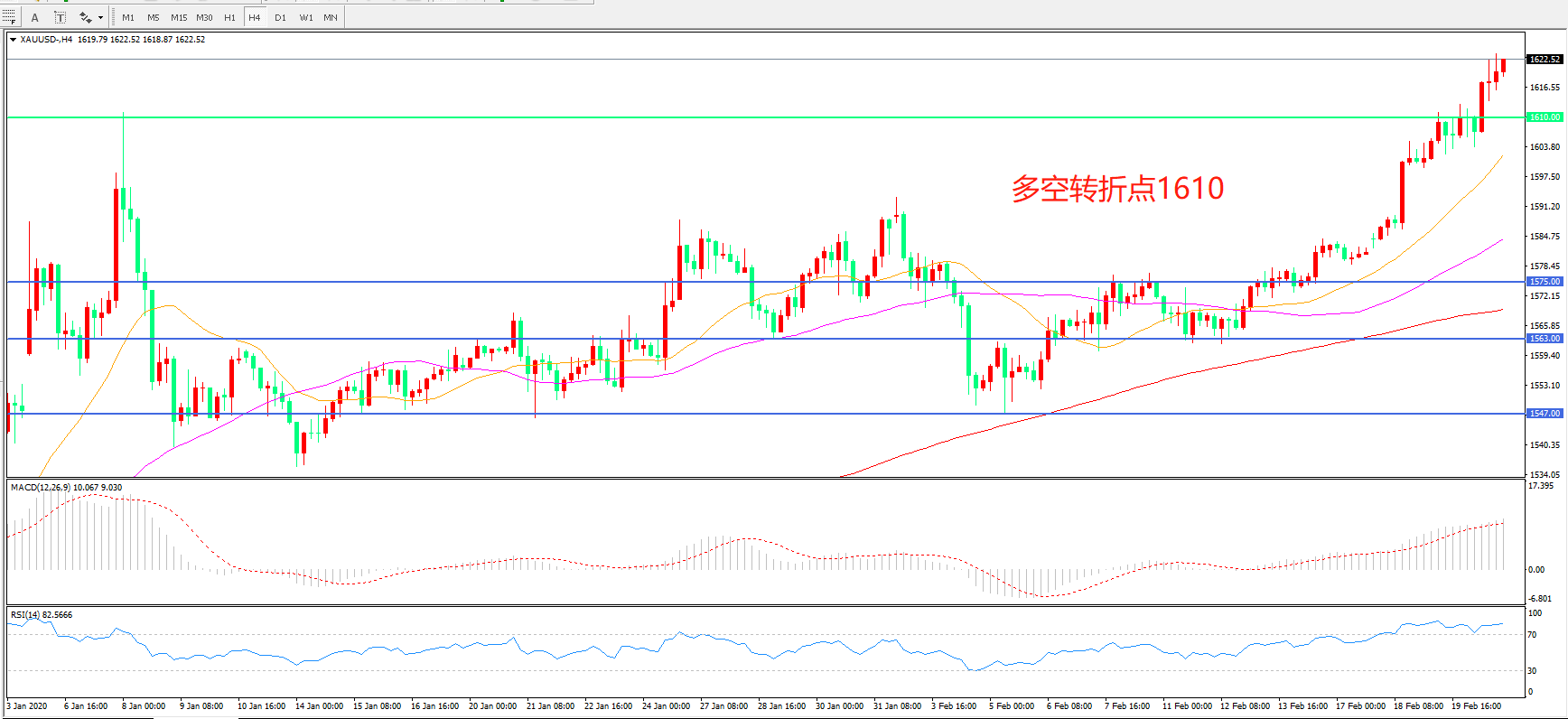 周四(2月20日),虽然中国新冠肺炎新增确诊人数大幅下降,但日韩两国确诊患者数量激增,这令投资者担忧情绪再度升温,尤其是日本传出一系列黯淡的经济消息,日本各大基金都在抛售本地资产,买入美元与黄金,现货黄金一度涨逾12美元,收报1621.56美元/盎司。