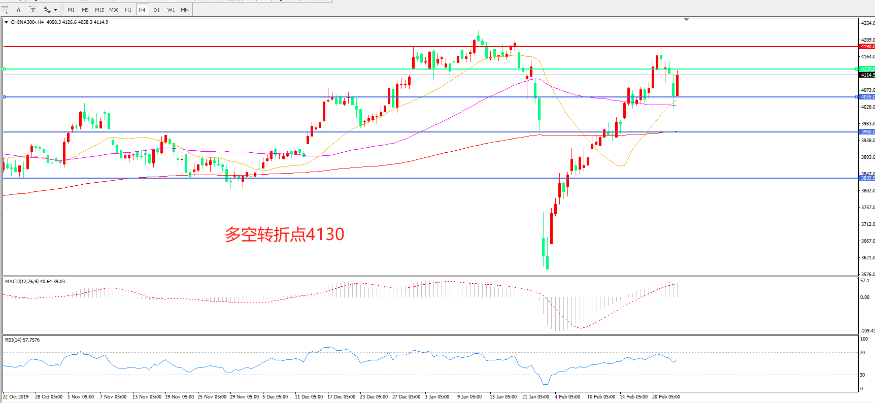 4小时图看,沪深300低开高走,整体表现偏强,短期均线走平,MACD红柱增加,RSI指标走平,日内延续上行概率较大。