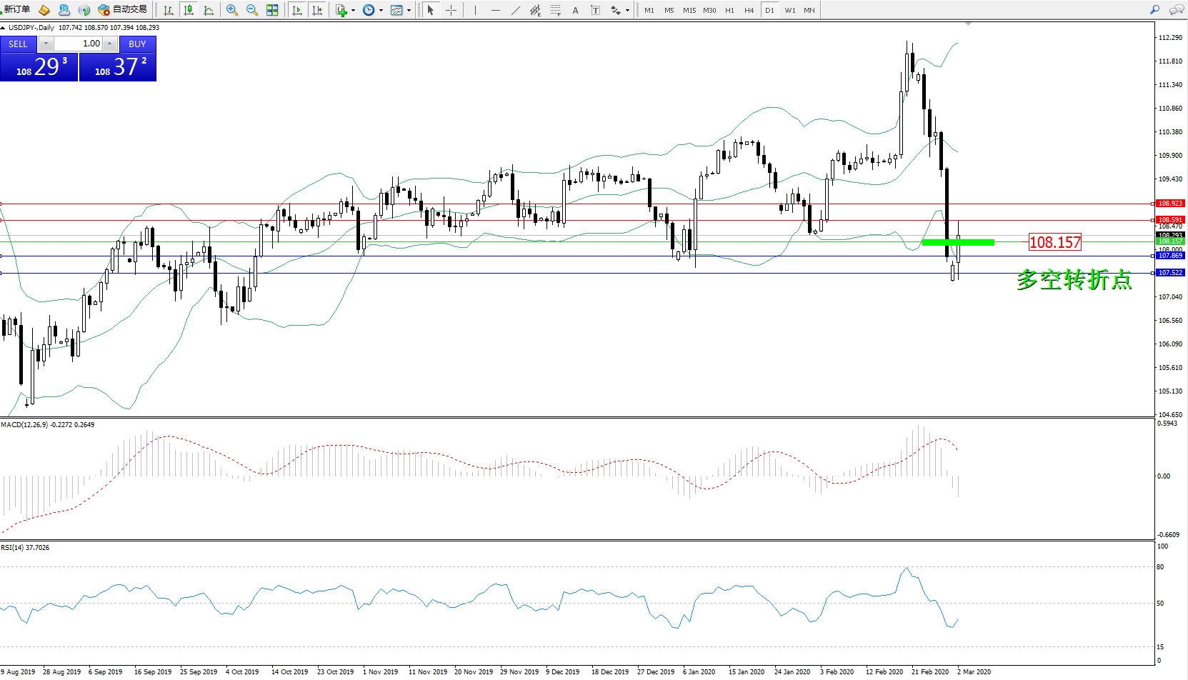 美兑日元上涨了0.41%108.33,此前在+0.6%/-0.8%的区间内波动,亚洲时段一度跌至10月以来最低点107.01;在日本央行提供流动性并承诺确保市场稳定之后,美元兑日元在伦敦时段反弹。在降息和增加债券购买之间做选择,日本央行更可能选择后者。在降息之后,再提高利率很难,而在扩大债券购买量之后,日本央行一直在减少购债量,增加债券购买也符合日本央行提供充足资金的目标,如果市场真的认为美联储将降息50个基点,那么10年期日本国债收益率可能会测试-0.2%。