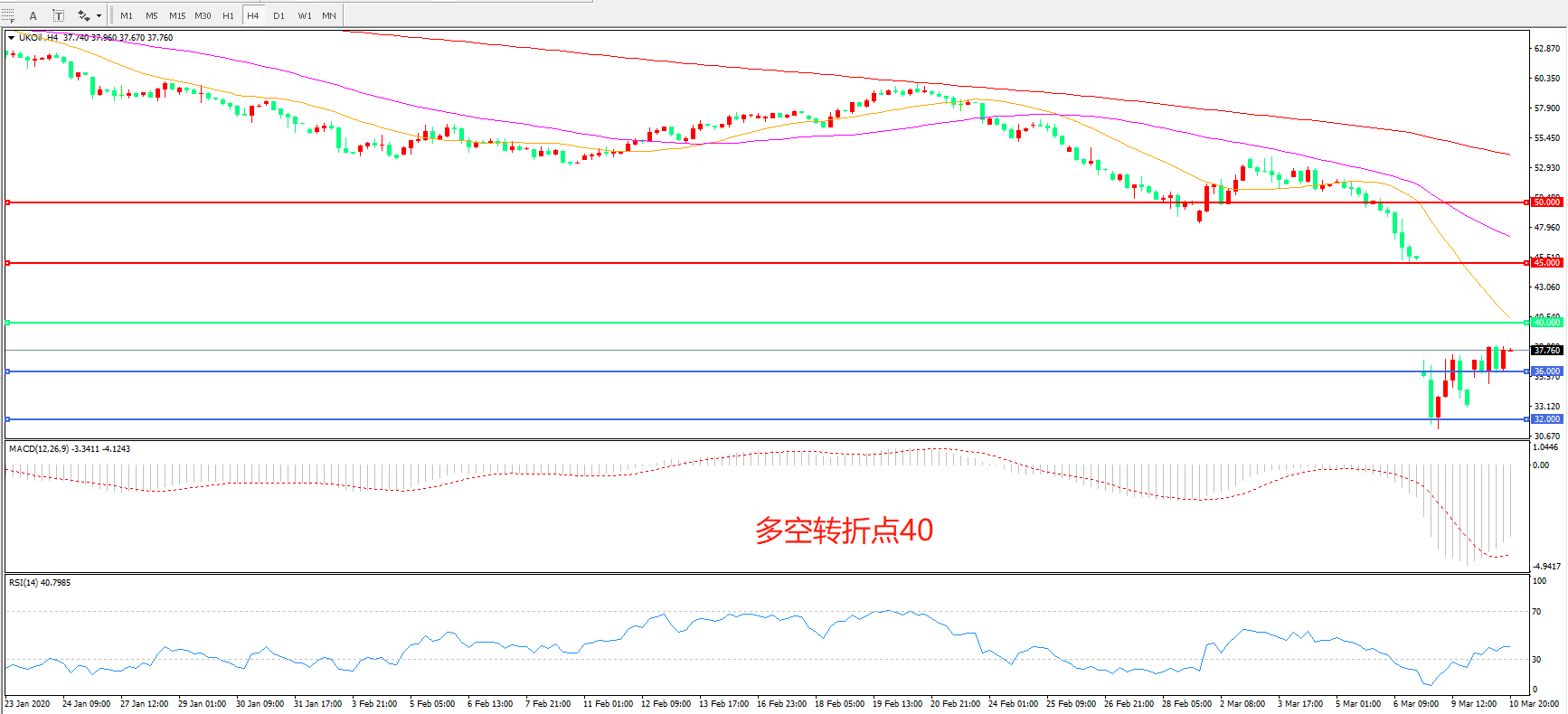 多空转折点:40.00