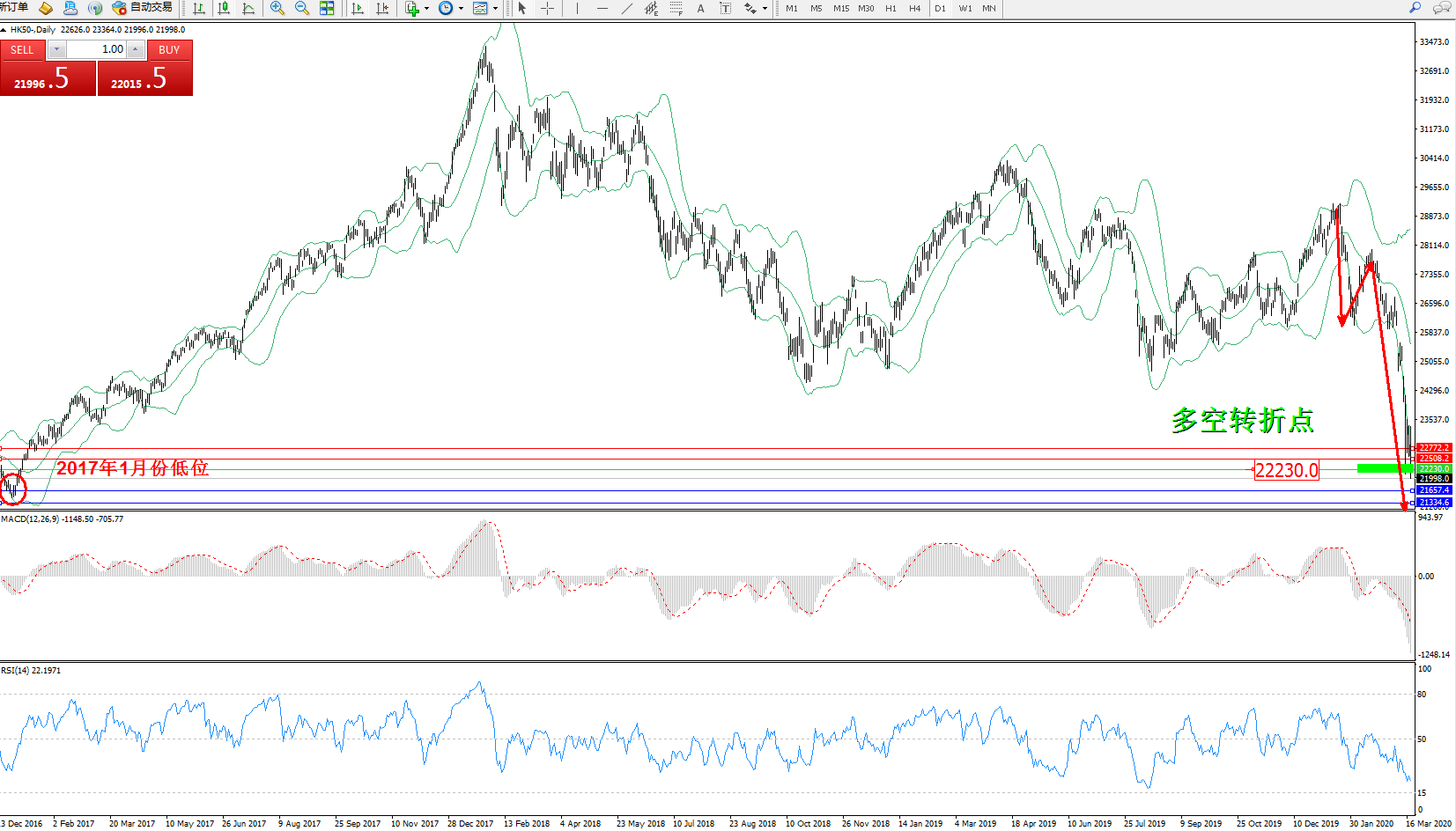 香港恒生指数318日(周三)收盘下跌971.91点,跌幅4.18%,报22291.82点;港股市场再现大跌行情,午后外围市场全部下跌,致港股午后开盘现单边下跌行情,尾盘国指跌幅一度扩大超5%,腾讯、中国平安等明显股皆重挫。市场再现恐慌情绪。主板成交量为1660.89亿港元,港股通大幅净流入70.42亿港元。。投资者避险情绪升温,亚洲股市纷纷转跌,欧股集体低开,而美股期货也再度熔断,三大股指期货全部触发下跌交易限制。有消息称,最大对冲基金桥水巨亏。美股今日再次暴跌,道指开跌约1200点,标普500指数盘中跌超7%,触发熔断,全市场暂停交易15分钟,恢复交易后道指继续下行,失守19000点,较2月高点跌超万点,但尾盘拉升,标普500指数一度收复2400点,纽交所:暂时全部转向电子交易,所有的电子交易将在下周一开盘时开始,股票和期权交易大厅将暂时关闭。