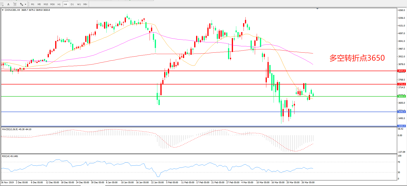 沪深300  CHINA 300   4小时图