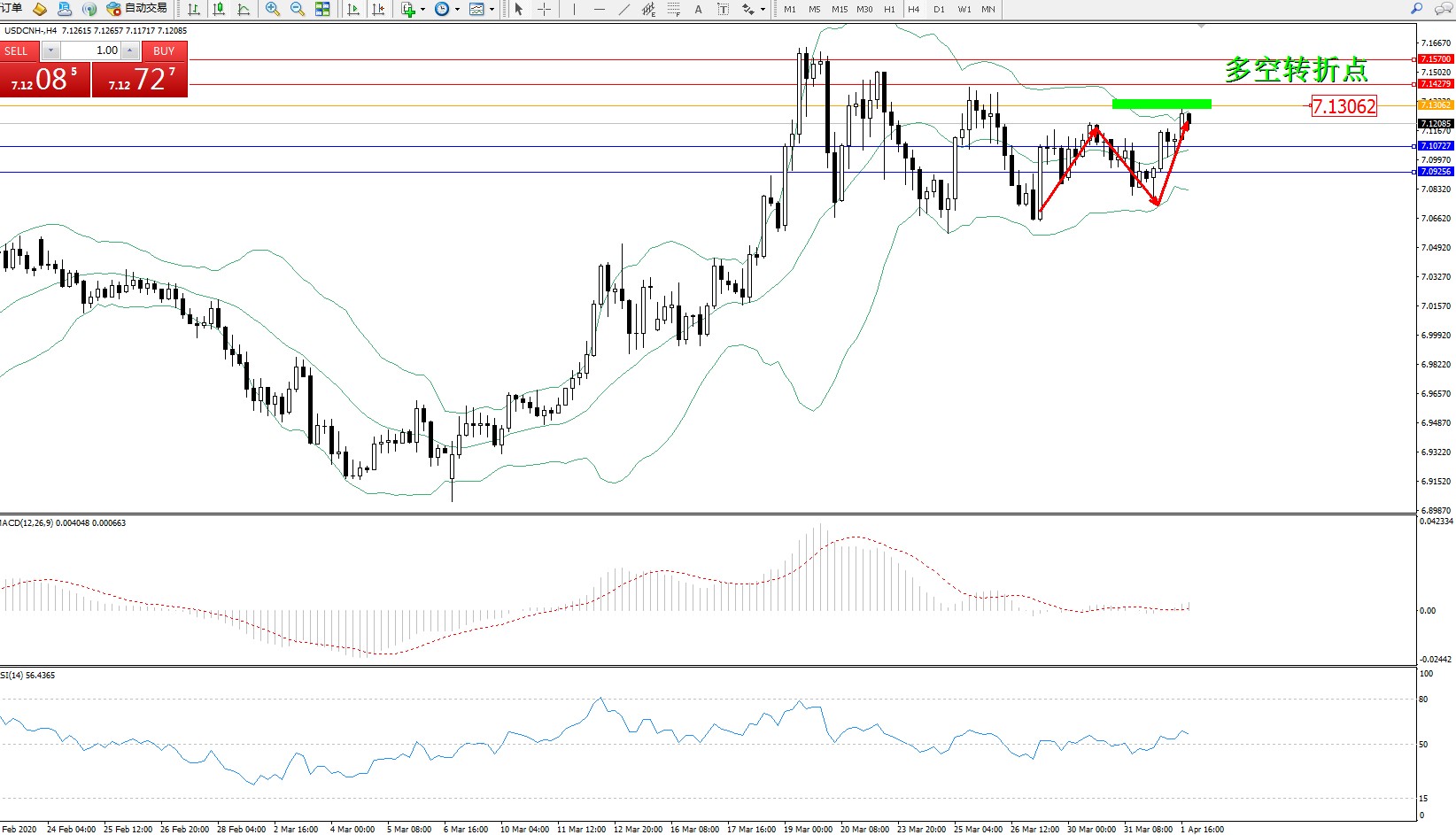 备选策略:7.13062上方看涨,目标7.14279、7.15700