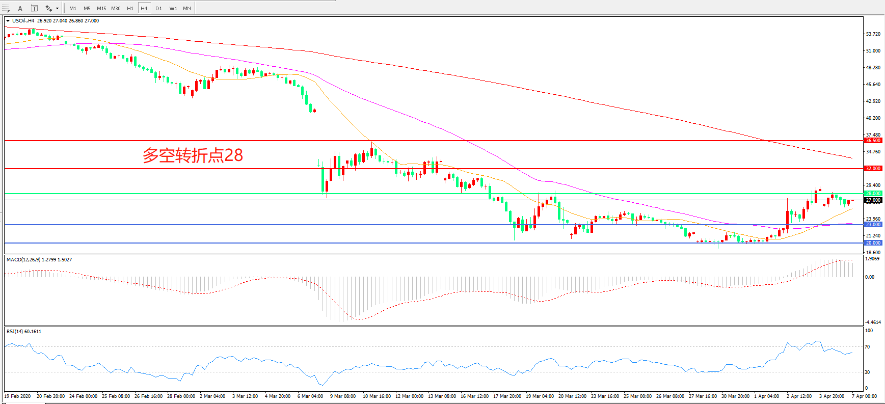最近原油减产方面的消息,可以说是舞台剧一般,周一(4月7日)受OPEC推迟紧急视频会议影响,油价一度大跌近9%。不过,随后在俄罗斯积极的表态推动下,油价跌幅收窄,美国WTI原油最终收报26.83美元/桶。