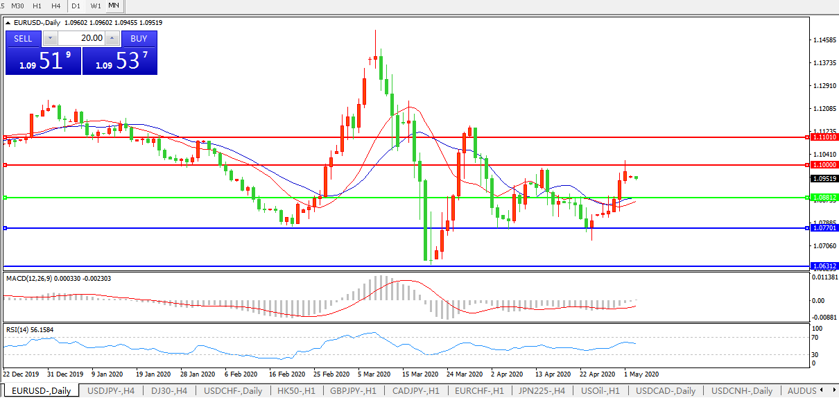 交易策略:1.0880上方看涨,目标1.1000、1.1100