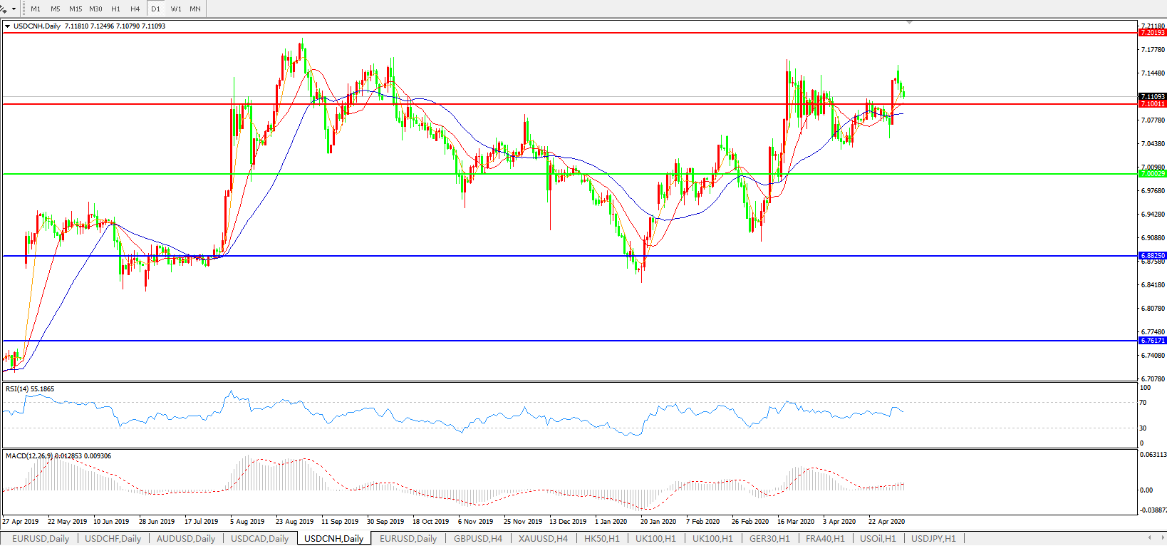 美元兑人民币USDCNH 日线图: