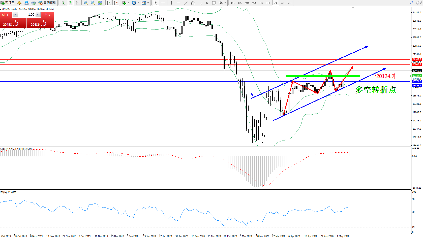 日经225指数5月11日(周一)收盘上涨201.91点,涨幅1.00%,报20381.00点。亚洲股市整体走高,日本立法收紧外国投资限制,涉及过半数上市公司。日本经济再生大臣西村康稔称,日本政府将考虑对疫情不严重的34个县中的部分地区提前解除紧急状态。日本全国紧急状态计划在5月31日结束。东京、大阪和其他11个县都不在有望提早放松限制的地区中。“至于34个县...如果我们确认疫情新增感染人数稳定,这当中许多县解除(紧急状态)将指日可待,”他补充说,如果解除紧急状态后出现疫情升温的迹象,可能重新实行紧急状态。日本上周将紧急状态延长实施至5月底,称将在5月14日评估疫情状况,一些县或许能够更早解禁。