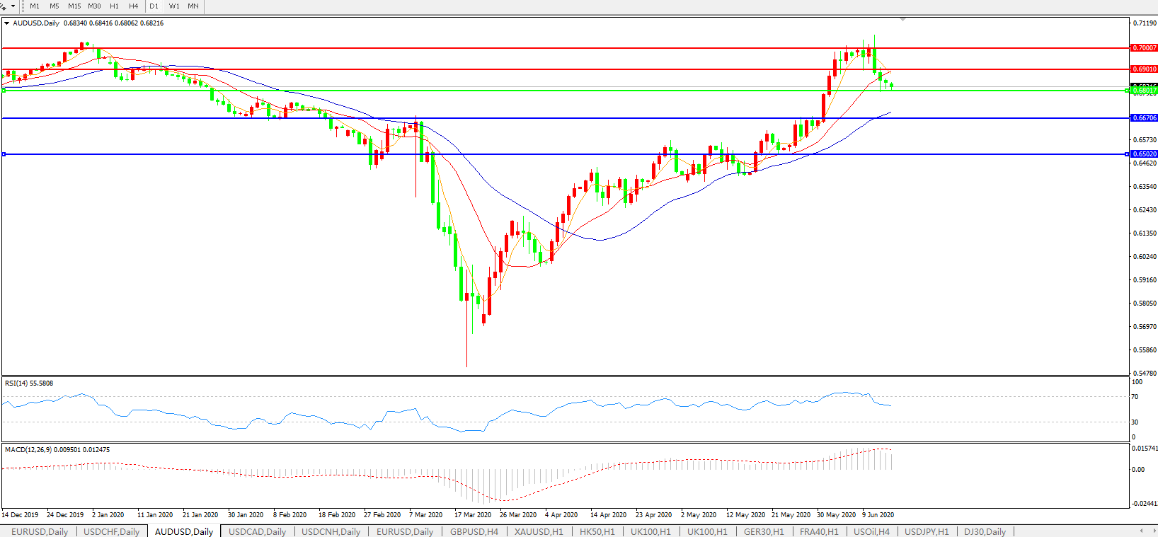 澳元兑美元AUDUSD    日线图:
