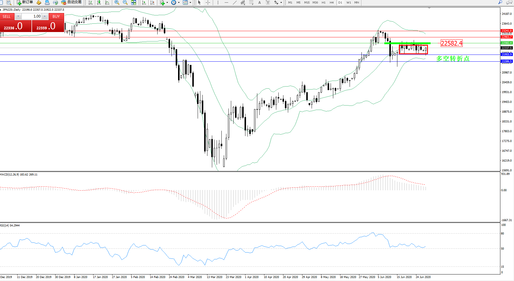日经225指数6月29日(周一)收盘下跌518.08点,跌幅2.30%,报21994.00点。日本官房长官菅义伟在29日的记者会上就新型冠状病毒感染者以东京都为中心趋于增加一事发表看法称,目前并不处于要再次发布紧急事态宣言的情况,也不属于要求避免跨县移动的阶段。市场对新冠感染病例增加的担忧引发对避险资产的需求激增,美元指数在周一亚洲时段延续回落走势,美国部分地区新冠感染病例重现激增态势使得投资者感到恐慌,债务投资者预期的严峻前景与股票市场的观点形成鲜明对比。由于对商业活动反弹的预期,本季度股价大幅回升,直到上周涨势消退,因为病毒感染激增并且某些州采取行动以减少重新开放。