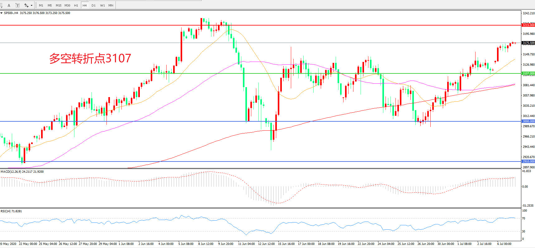 周一(7月6日),美国新冠疫情感染人数持续上升,但受惠于上周公布的出色就业数据,以及亚洲股市大涨的带动,标普500震荡上行,收报3175.25点。大型科技股方面,苹果涨2.68%;Facebook涨2.94%,中概股方面,阿里巴巴涨7.33%,百度涨7.81%。