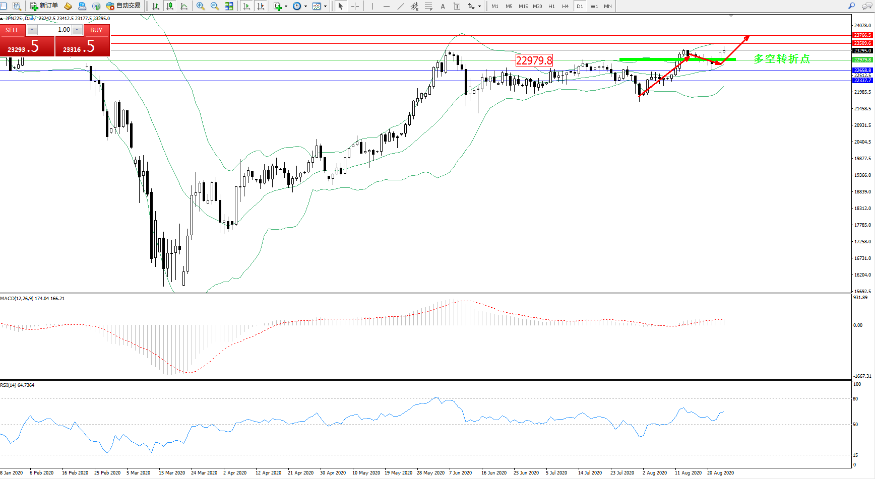 日经225指数8月25日(周二)收盘上涨307.99点,涨幅1.34%,报23293.50点。日本共同社24日称,该媒体实施的舆论调查显示,安倍内阁支持率已跌至36%,接近其第二次上台后的最低点;这显示出政府的新冠肺炎疫情应对迷失方向造成了影响,国民对其长期执政的期待感已消失。背后原因可能还包括出现了安倍健康状况堪忧的说法。疫情导致经济指标恶化,国民对其招牌政策“安倍经济学”的信赖已发生动摇。市场对疫情走势前景依旧谨慎。此前美国疾控中心首席科学家福奇称总统特朗普在新冠病毒血浆疗法和疫苗实验上的进度“操之过急”。美国通胀水平自新冠疫情爆发以来急剧下降,美联储的最新研究将原因归结为居家令导致消费需求下滑。