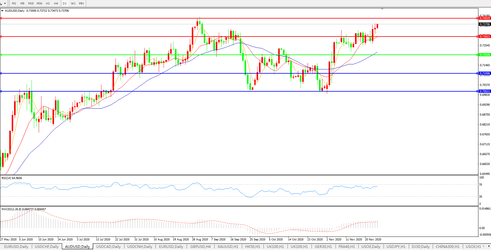 压制位:0.7300 0.7400