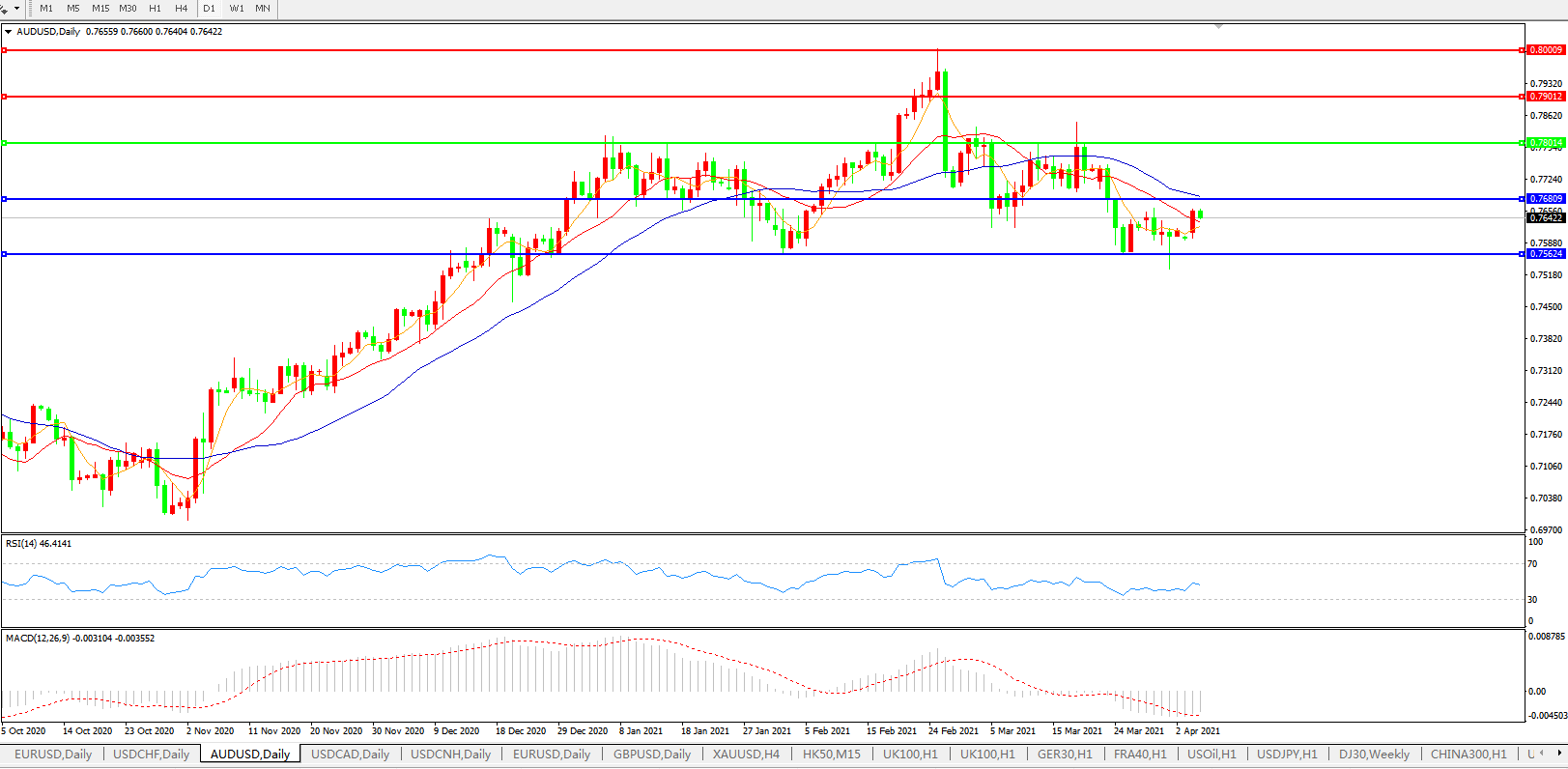 交易策略:0.7800下方看跌,目标0.7680、0.7560