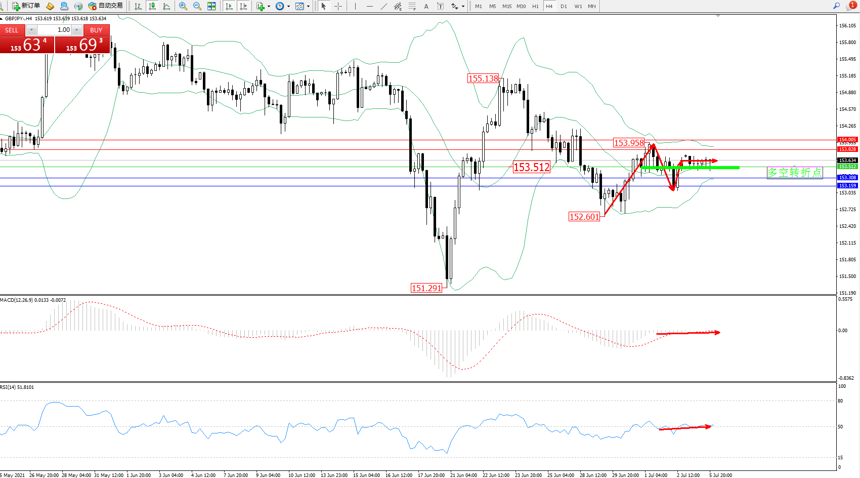 技术点评:空头动力延续布林带指标下轨附近持续震荡下行,低位抵达152.601位置后开始反转震荡上扬,纠结于布林指标通道中轨附近维持窄幅波动逐渐收窄中,布林带指标呈收口走势持续中,关注中轨附近节点,MACD指标处于空头区域低位弱势整理回升至0轴线附近徘徊,RSI指标处于50均衡线附近持续震荡中;