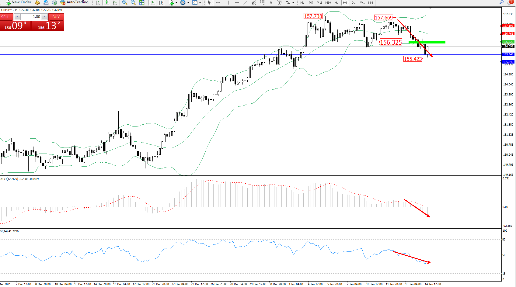 交易策略:156.325下方看跌,目标155.649、155.242