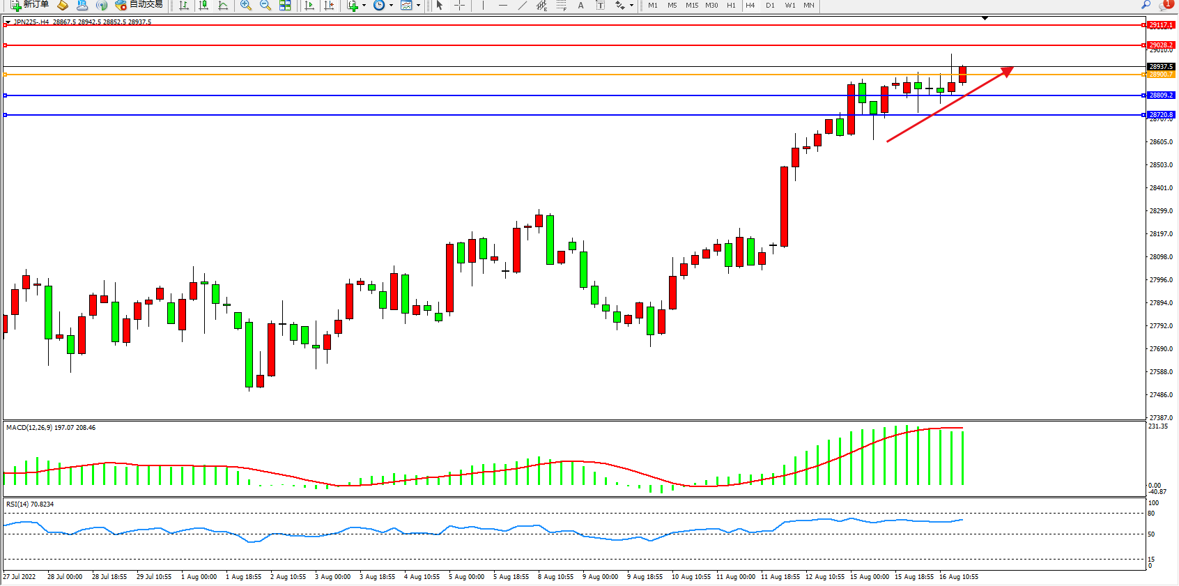 日经225指数8月16日(周二)收盘下跌4.28点,跌幅0.01%,报28867.50点。日本6月第三产业活动指数月率 -0.2%,预期0.40%,前值0.80%。