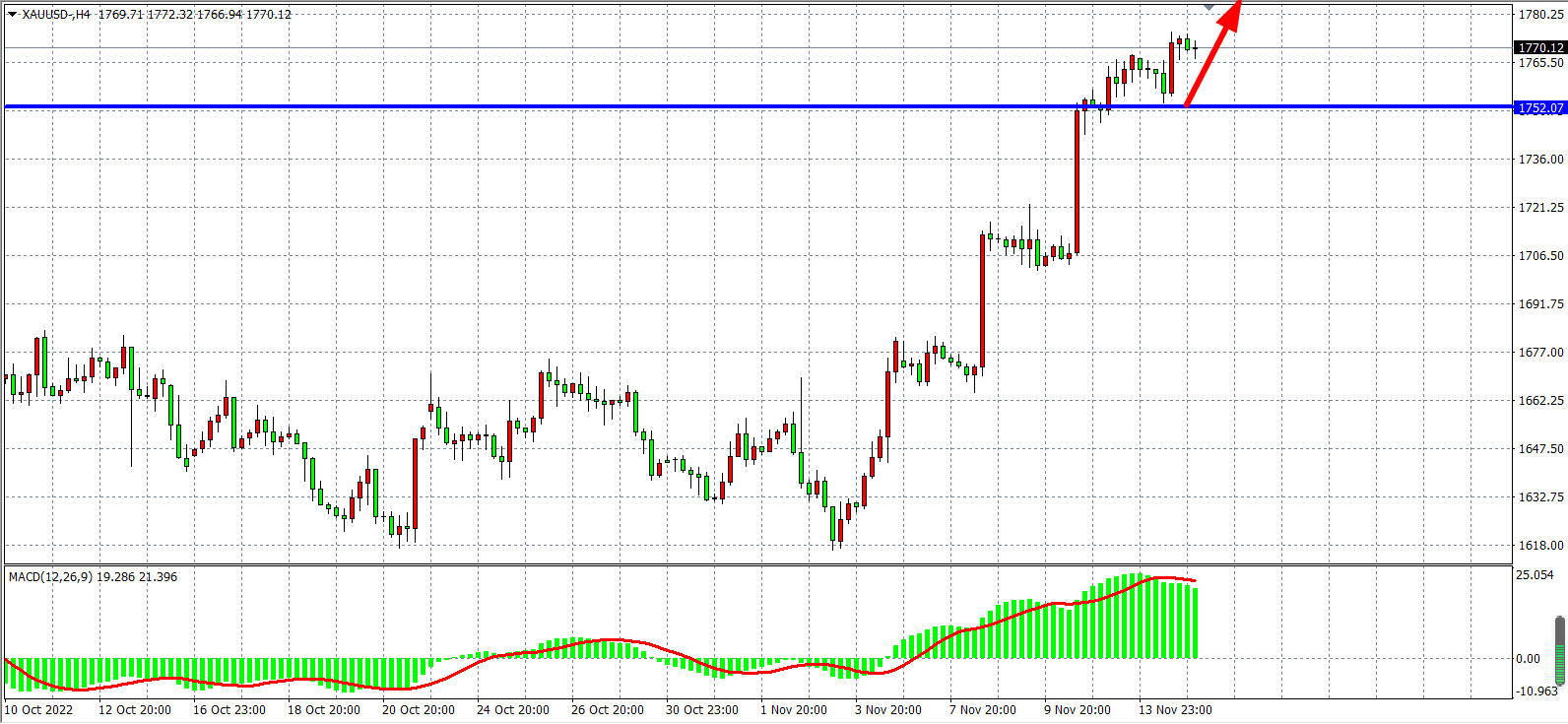 4小时图看,金价在1750美元之上再度走高,最高涨至1770美元附近,同时MACD于零轴之上持续维持放量状态,预示行情有进一步走强动能,当前支撑已上移至1752附近,日内在该位之上继续看涨为主,上方目标1775-1790