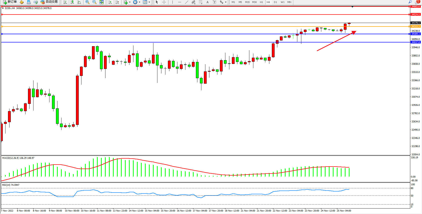 4小时图看:多头动力高位维持整理缓慢上移,短期看涨情绪依旧,MACD指标处于多头区域维持整理平移,RSI指标处于多头区域高位徘徊;