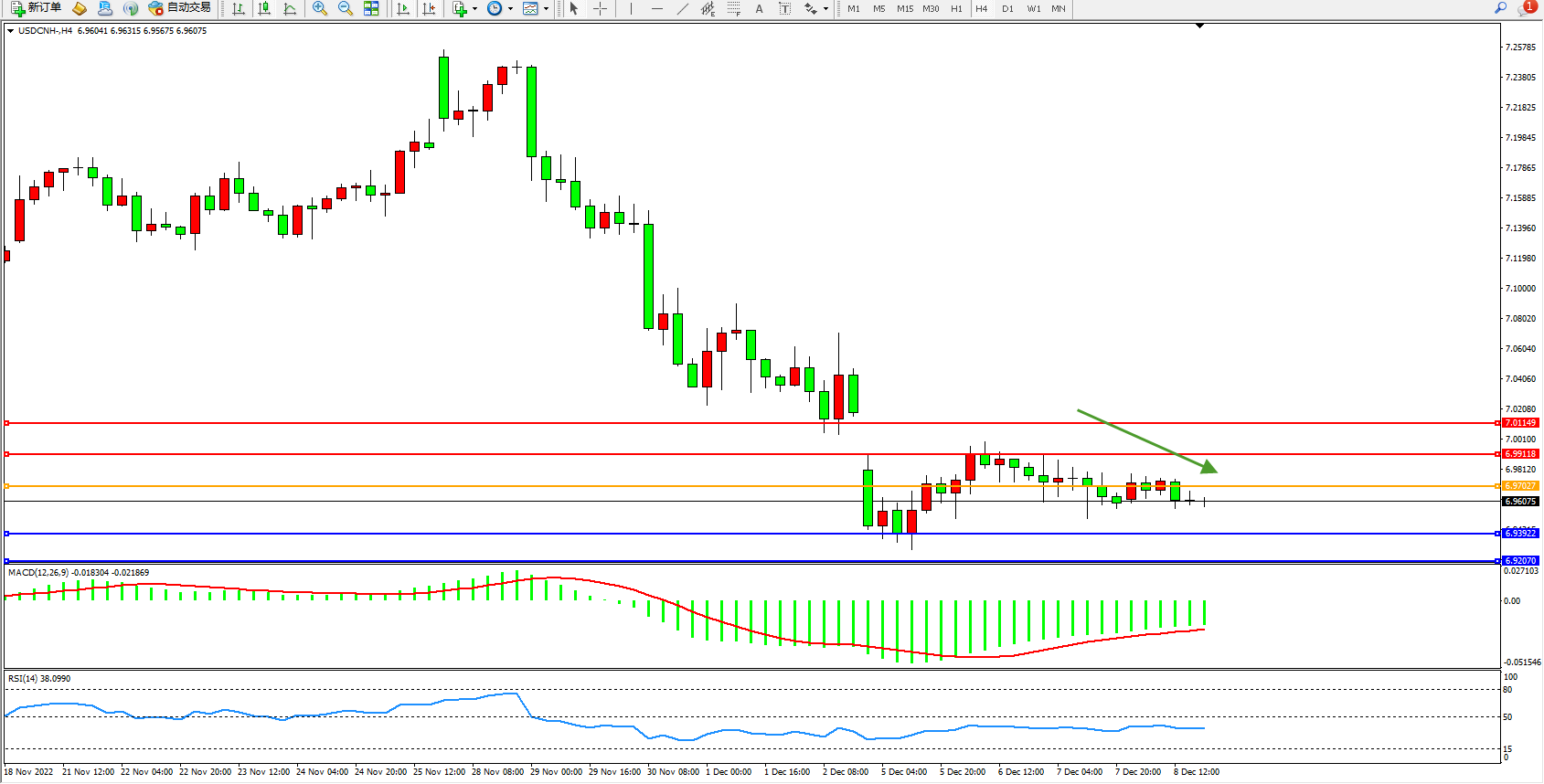 交易策略:6.97027下方看跌,目标6.93922、6.92070