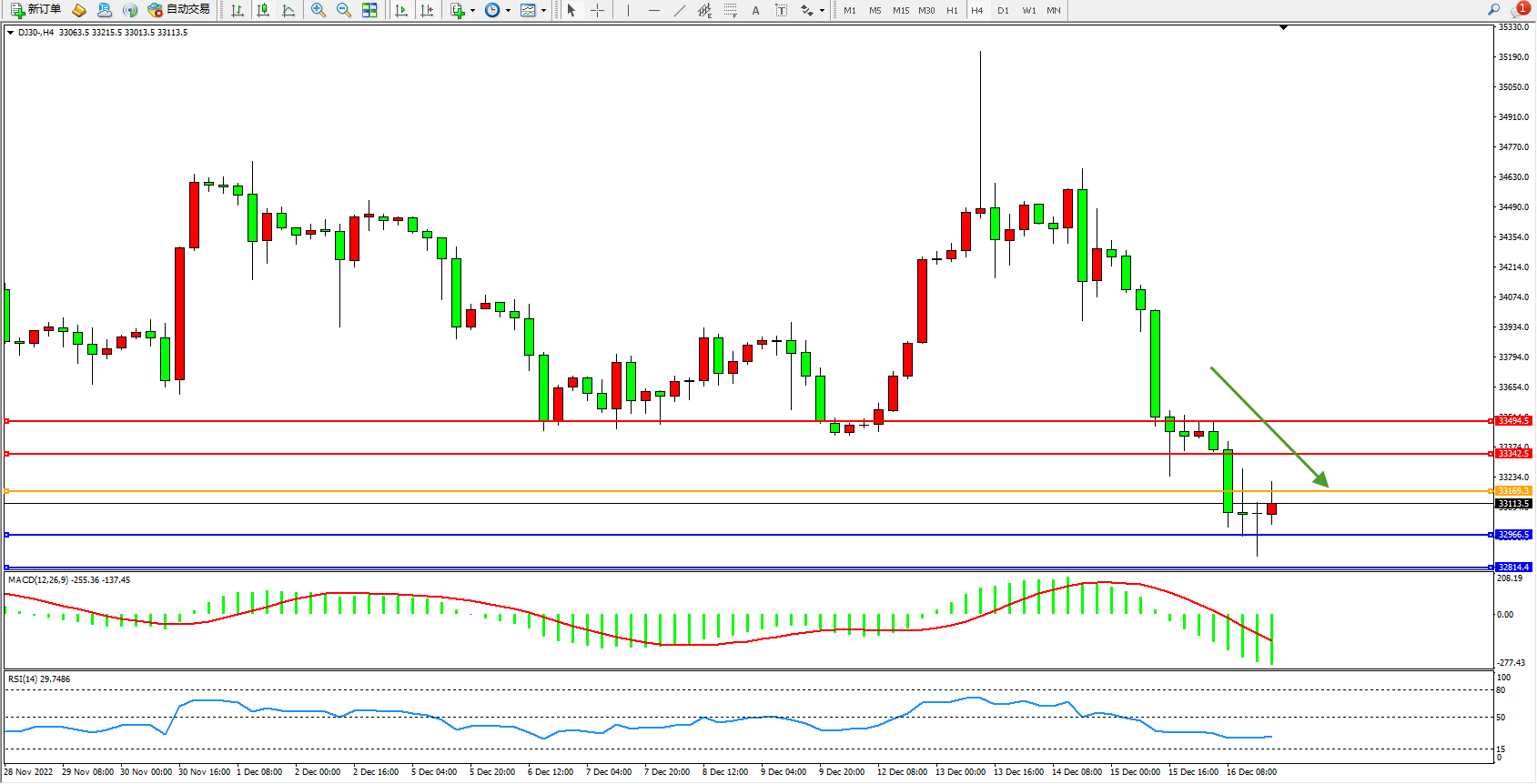 道琼斯工业平均指数收跌281.76点,跌幅0.85%,报32920.46点,最近三天累跌3.48%,本周累跌1.66%。美国12月PMI显示,商业活动进一步萎缩,新订单降至逾两年半以来最低,但需求走软帮助大幅冷却通胀。